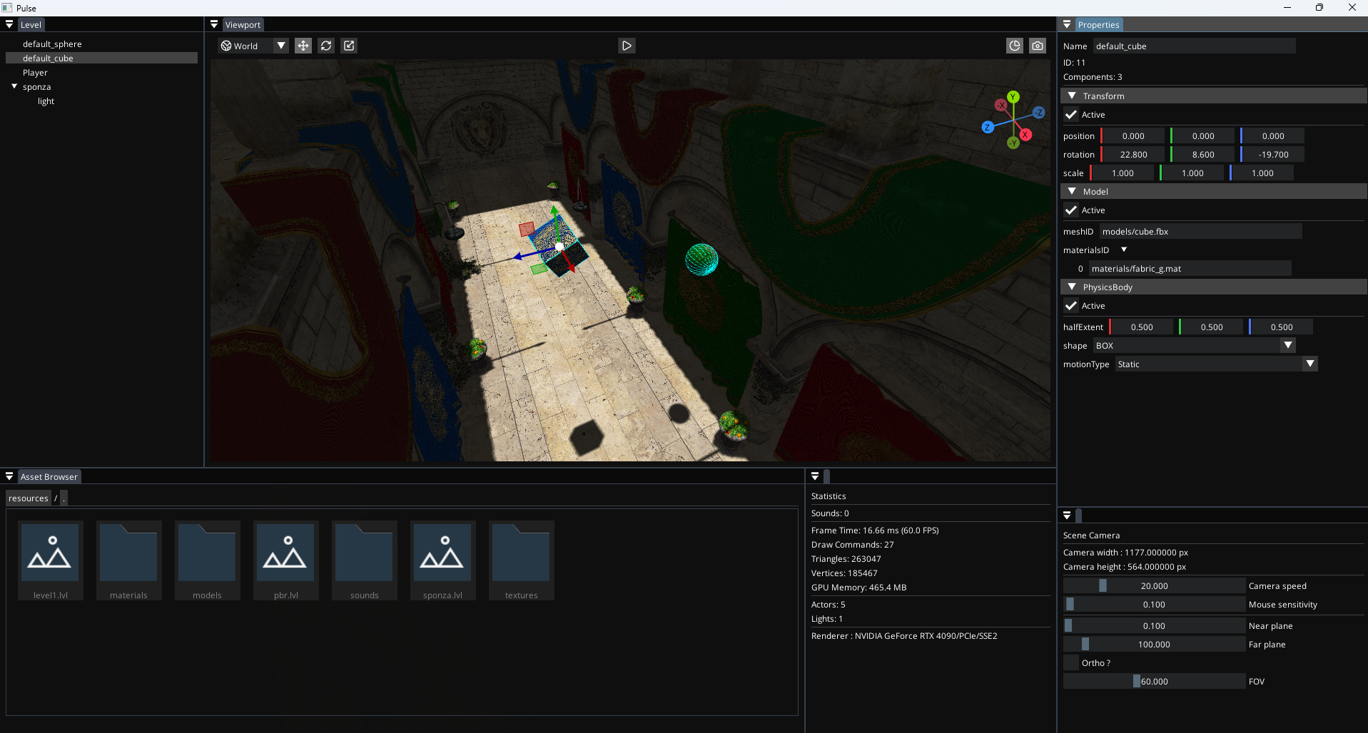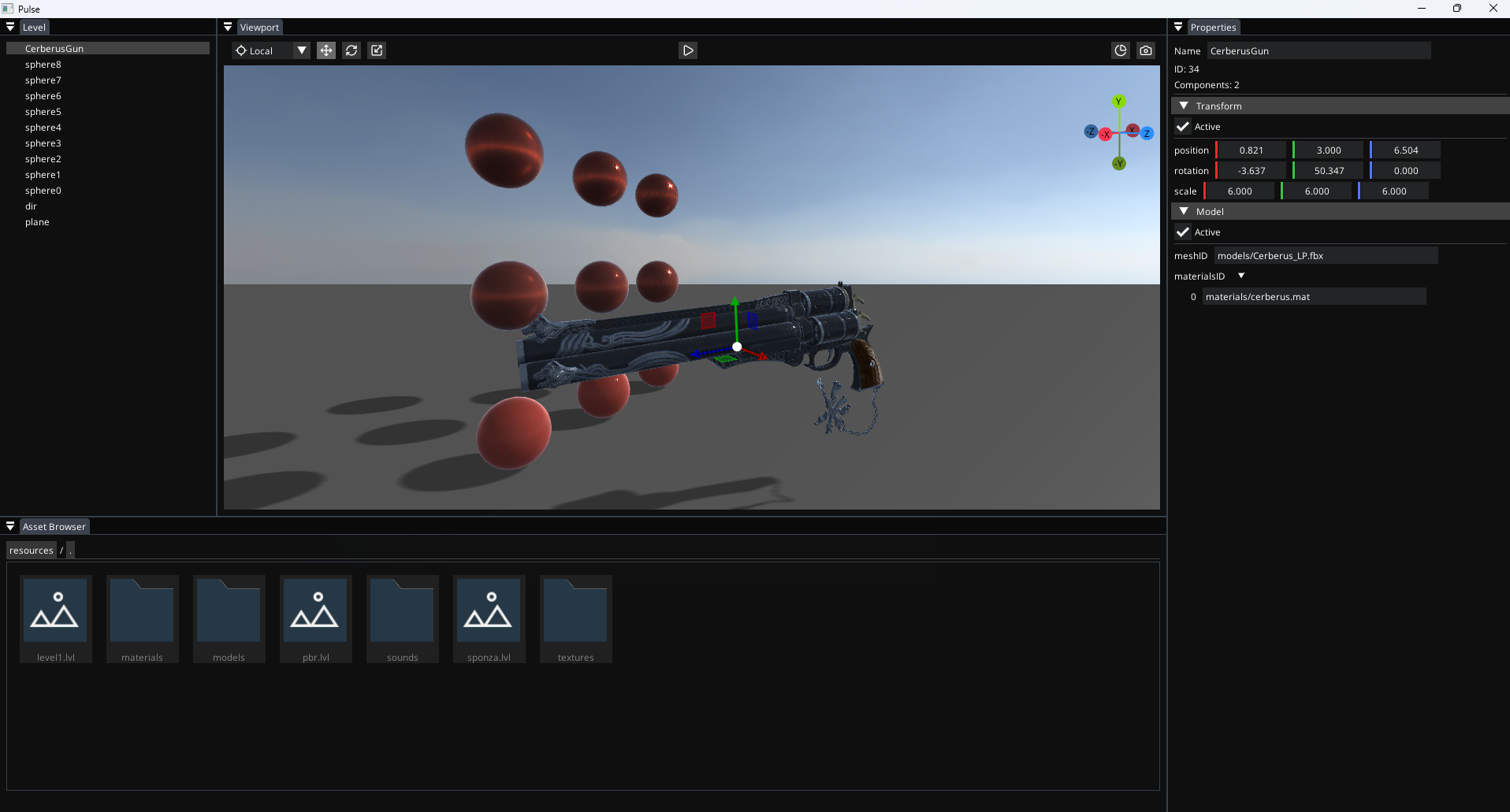 • Project Summary : Pulse Engine is my current personnal game engine, written from scratch (using some libraries) on my free time. It includes a 3D PBR renderer, an editor, a level system, and a lot of other things. It is still in active development.