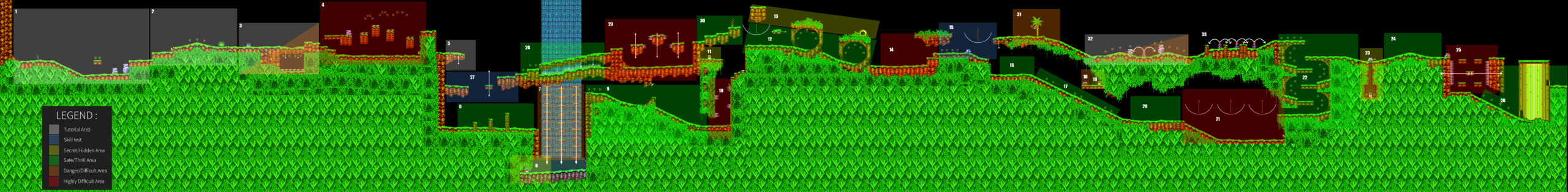 - Project Summary : Over a two-week period, I studied and applied core level design principles by creating a 2D level. The project focused on pacing, level flow, respecting the game’s USP, and adapting difficulty based on the player’s skill progression.